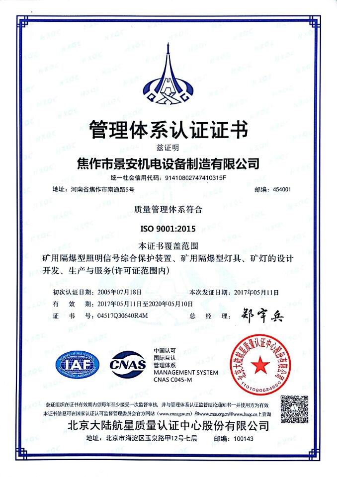 焦作景安公司始終堅持“以科技為先導,以市場為導向”的發(fā)展戰(zhàn)略,不斷進行新產品的研制和開發(fā),在國家“六五”到“九五”期間,承擔和參與了國家多項科技攻關項目。并被中國電器工業(yè)協會評定為“質量可信產品”。特別是在礦用防爆燈領域,礦用隔爆型半導體(LED)照明燈具,2008年列入國家火炬計劃,獲2009年河南省工業(yè)和信息化廳的科技成果二等獎,并擁有多項國家專利。 |
